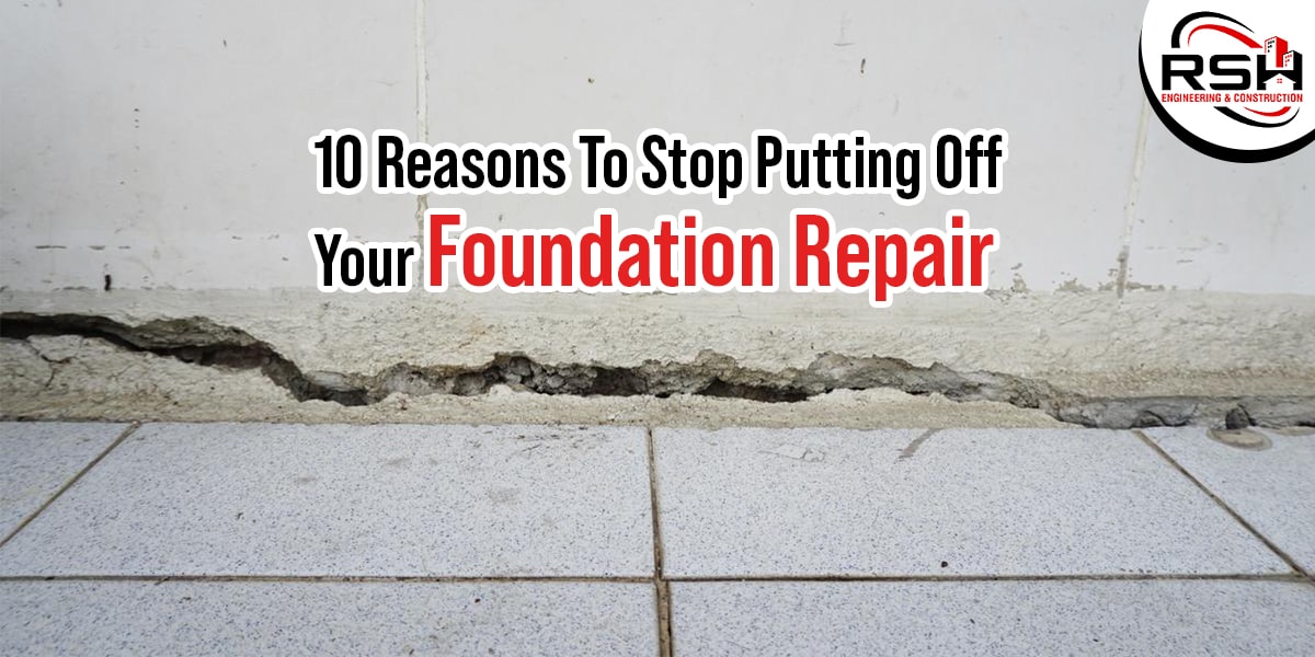One aspect of home maintenance often gets overlooked until it’s too late: the foundation. Your home’s foundation is the bedrock upon which your entire house rests. Ignoring foundation issues can lead to a cascade of problems, both in terms of safety and finances. At RSH Engineering and Construction, we understand the significance of a solid foundation. Here, we’ll delve into the ten reasons you should stop procrastinating and take action on your foundation repair needs.